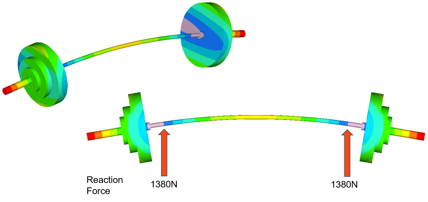 To perform a more detailed structural analysis on the barbell, Altair OptiStruct was used to model the initial setup of the bar. The total mass including the bar and weights was 280 kilograms, roughly equaling the mass of the bar and weights during the world record lift.