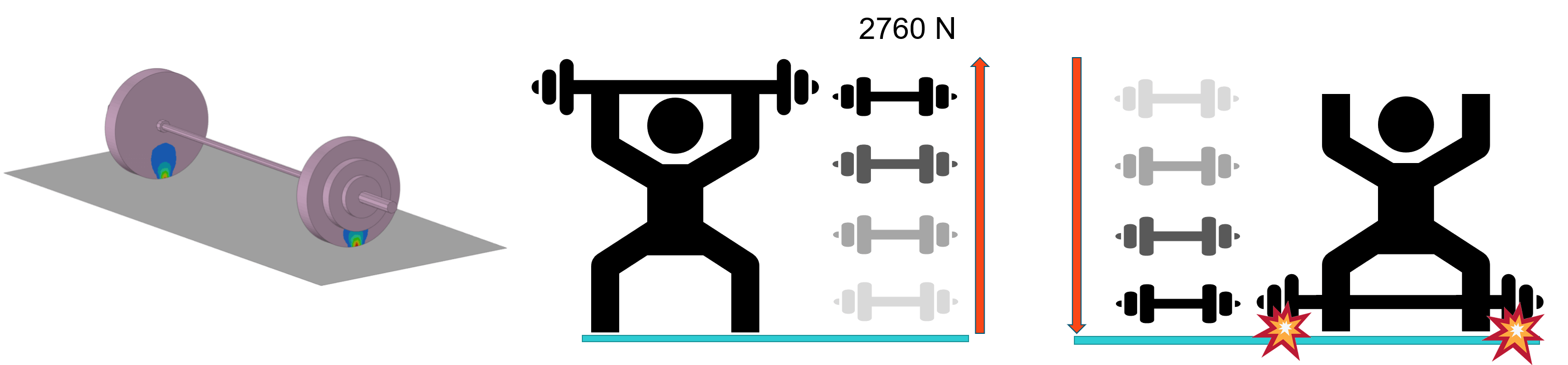 From these simulation images, in order to actually lift the barbell, the athlete would need to provide an upward force greater than 1380 N in each arm. Once the athlete applies that force and brings the barbell above their head, he/she can reduce the magnitude of the upward force to be exactly the same as the barbell’s magnitude to reach equilibrium. This proves that not only does it matter how much weight is lifted, it’s also just as important how fast the weight is lifted to correctly complete the lift.