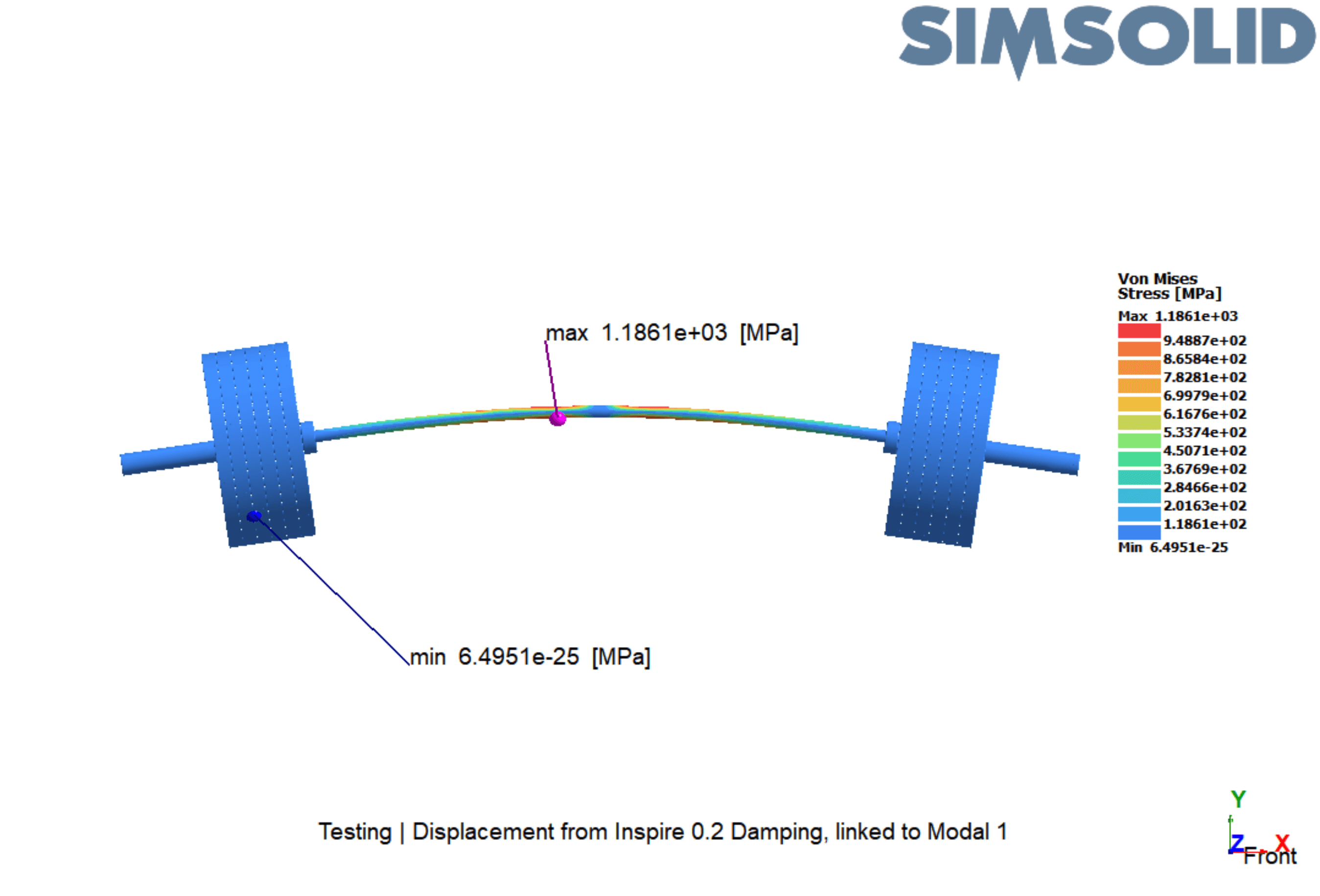 We can conclude that although the peak stresses were very high, the bar could likely withstand them due to their short duration. The key to this simulation was to set the constraints and damping to the most accurate levels possible using SimSolid’s rapid design iteration capabilities.