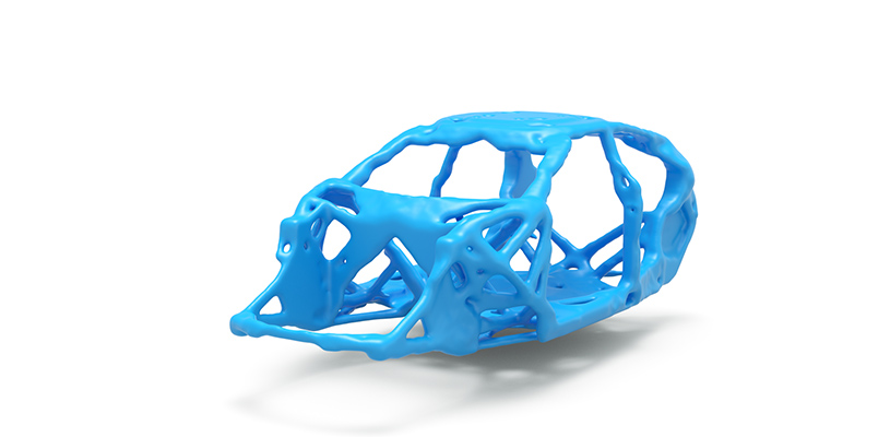A topology optimization of a car frame that can facilitate AI modeling and an engineer's understanding of the design space.