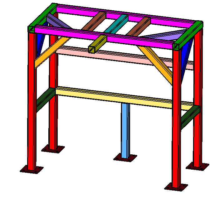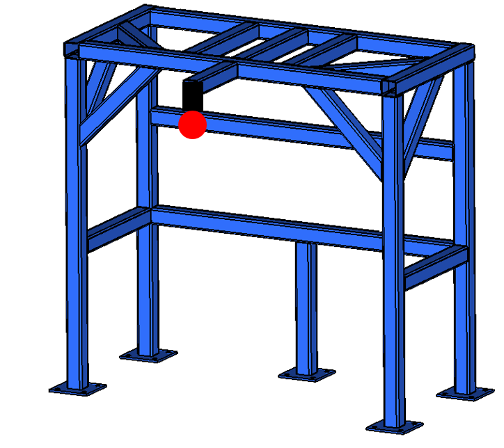The structure we are using is made up of standard 2“x2”x0.12” tubes welded together to support a 440-lbs mass (shown in red) from the front overhanging tube. It’s supposed to withstand gravity loads, in various directions, with deflection requirements. It is bolted to the floor at five locations.
