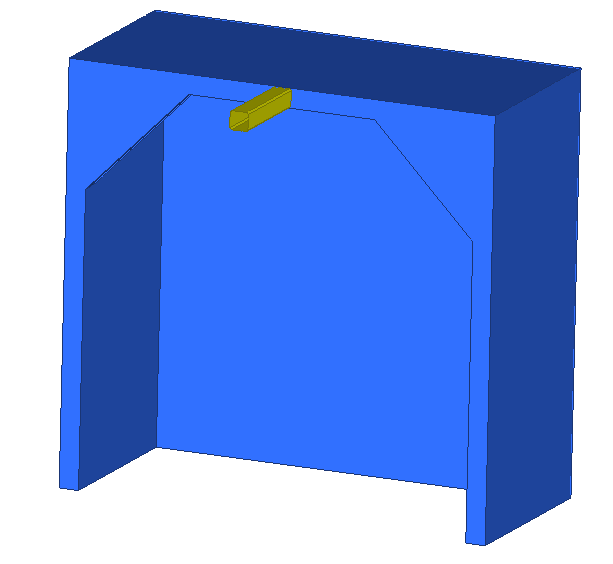 For the considered structure, the design space is shown in blue. The inside of the structure was left open, just like the original design. The overhanging tube was excluded from the 3D topology optimization, as it does not affect the overall load-paths.