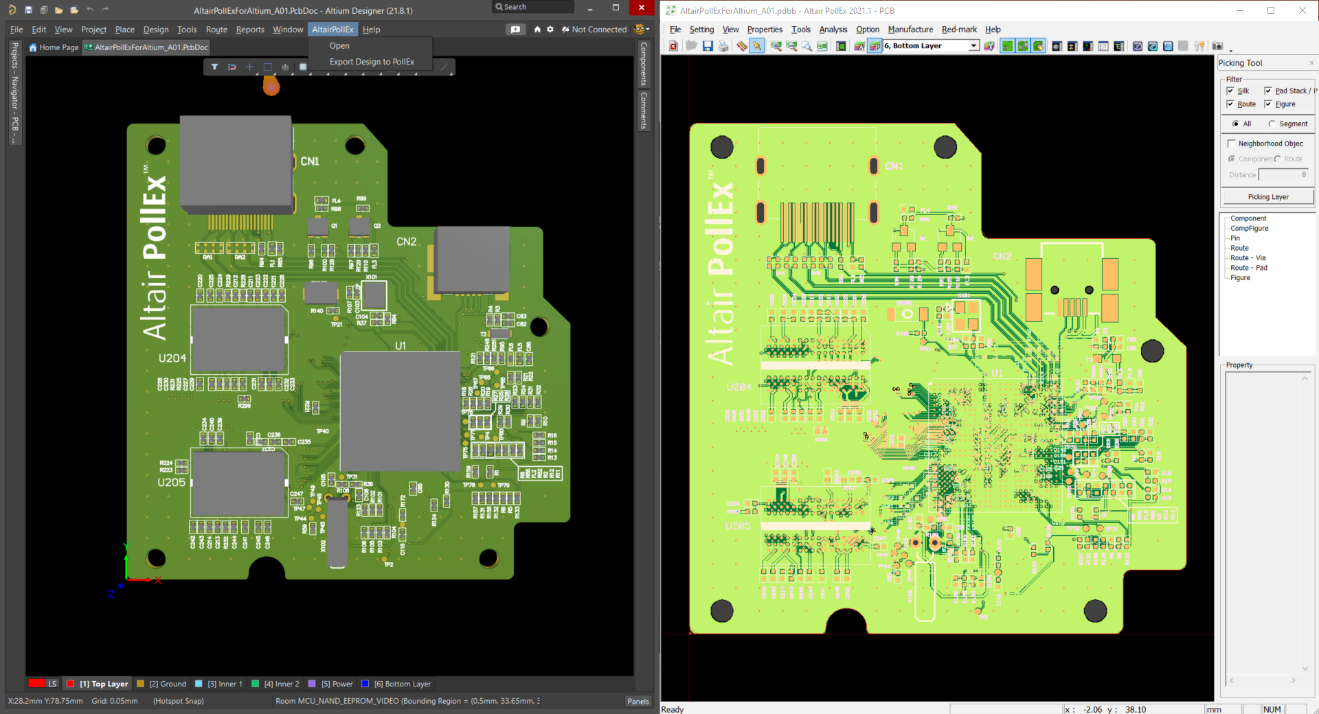 Altair Simulation 2022 includes more capabilities for circuit board and electronic design tools that enhance users’ abilities to design and implement smart components, products, and systems. Altair PollEx now features expanded design verification, signal integrity, and printed circuit board (PCB) modeling functionalities. It also includes cross probe verification like DFx Excel results and a direct ECAD link to Pulsonix and Altium Designer; the latter feature is also included in PollEx for Altium, a free, recently released tool available to all Altium Designer customers.