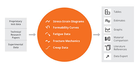 Total Materia (TM) Horizon contains information for more than 500,000 metallic and non-metallic materials, and contains material properties data in 26 different languages, catering to various global industries such as aerospace, machinery, automotive, energy and utilities, and more. Additionally, TM Horizon supports both efficient material selection decisions and diverse engineering challenges with a vast range of data including stress-strain, fatigue data, and much more.